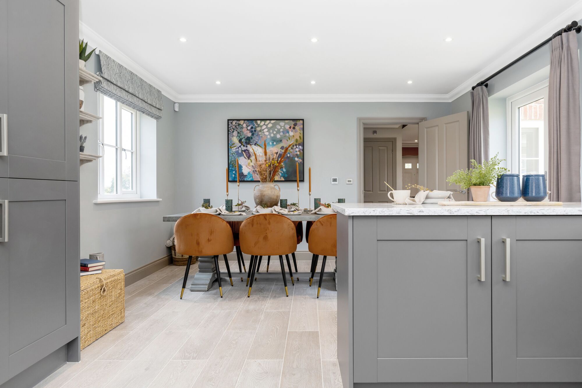 Underfloor heating throughout the ground floor, powered by an air source heat pump, keeps the home warm and running efficiently with lower energy bills that make a tangible difference from month one.