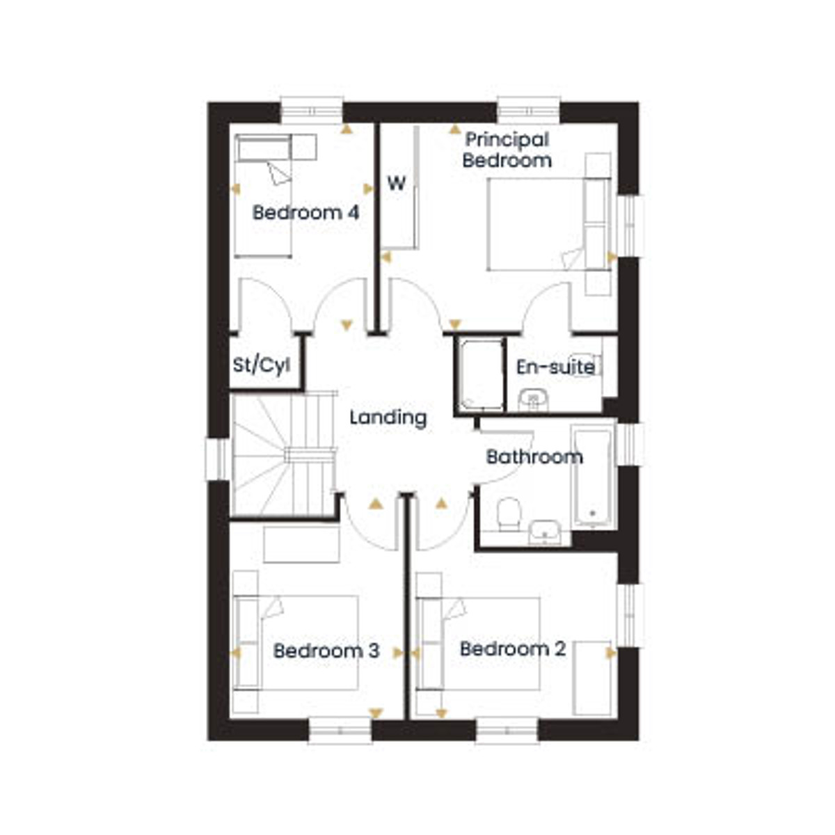 Upstairs, the layout delivers four genuine bedrooms without feeling stretched. The principal bedroom benefits from a fitted wardrobe and its own en-suite shower room. The three remaining bedrooms are served by a well-appointed family bathroom, with useful landing storage ensuring the first floor stays organised rather than cluttered.