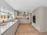 At the heart of the home is a beautifully designed first floor that puts sociable living front and centre. An open-plan L-shaped kitchen and dining room complete with quartz worktops, integrated appliances and flooring included throughout creates an elegant and practical space for everything from weekday family meals to weekend entertaining. A separate family room provides a more relaxed retreat, while the spacious living room offers yet another distinct space to unwind, meaning the whole family can spread out and enjoy this home simultaneously without compromise.