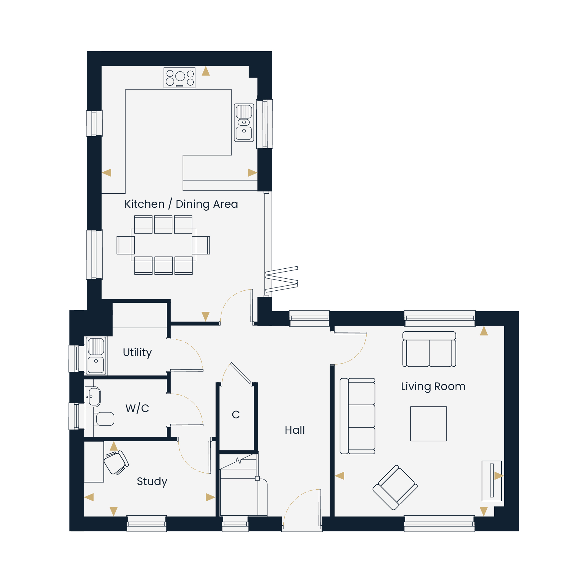 From the moment you step inside, The Chiltern announces itself as something special. The dual-aspect living room is an immediate highlight, a wonderfully light and generous space. It is the kind of room that is genuinely inviting in every season: cool and bright in summer with sliding sash windows thrown open to the garden, and cosy and atmospheric in winter. This is a room you will want to spend time in, and it sets the tone for everything that follows.