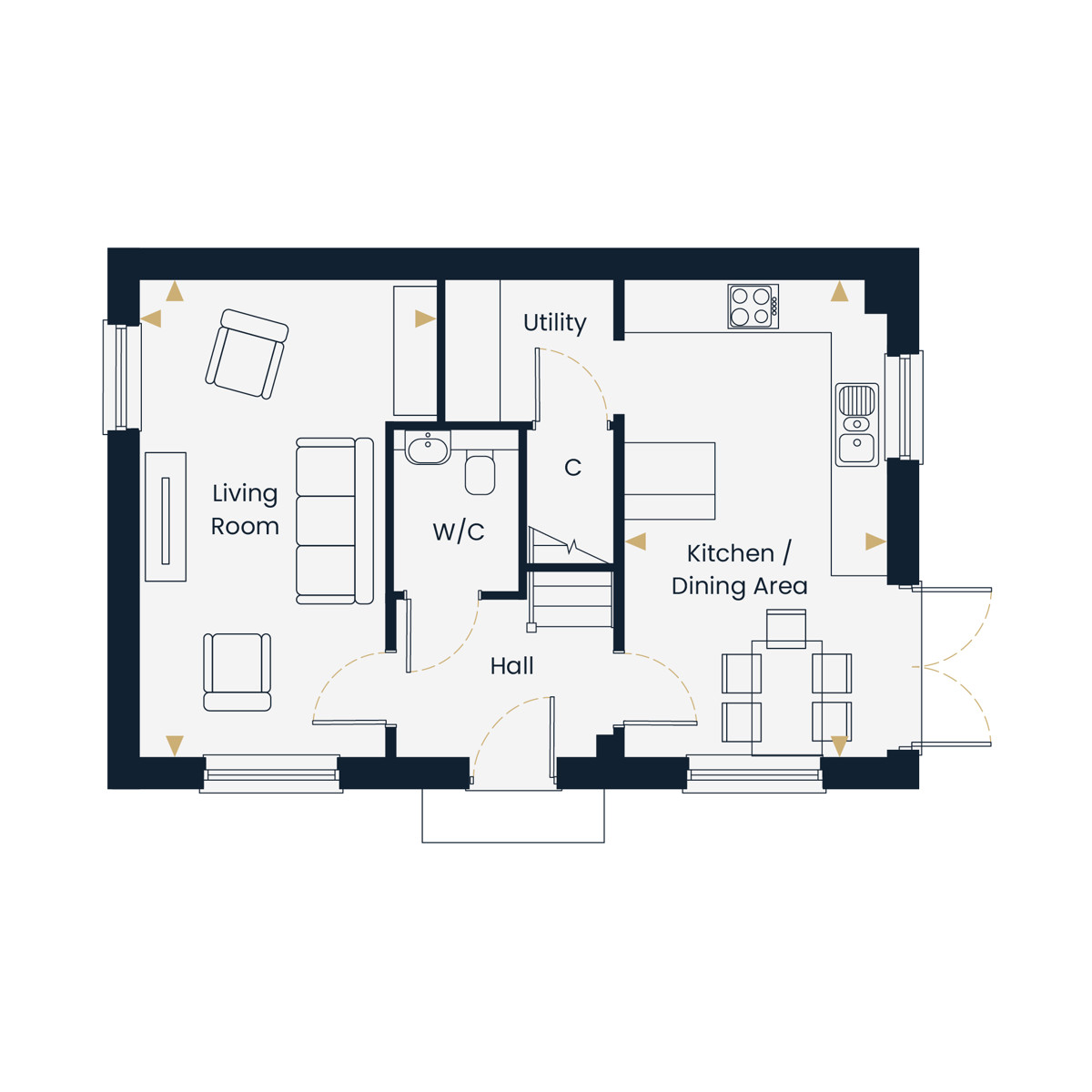 The ground floor runs the full width of the house and benefits from a separate living room and open-plan kitchen and dining area. The kitchen has French doors opening to the rear garden, and a separate utility area keeps laundry out of the main living space. The garden faces west, meaning it gets sunshine afternoon through to evening.