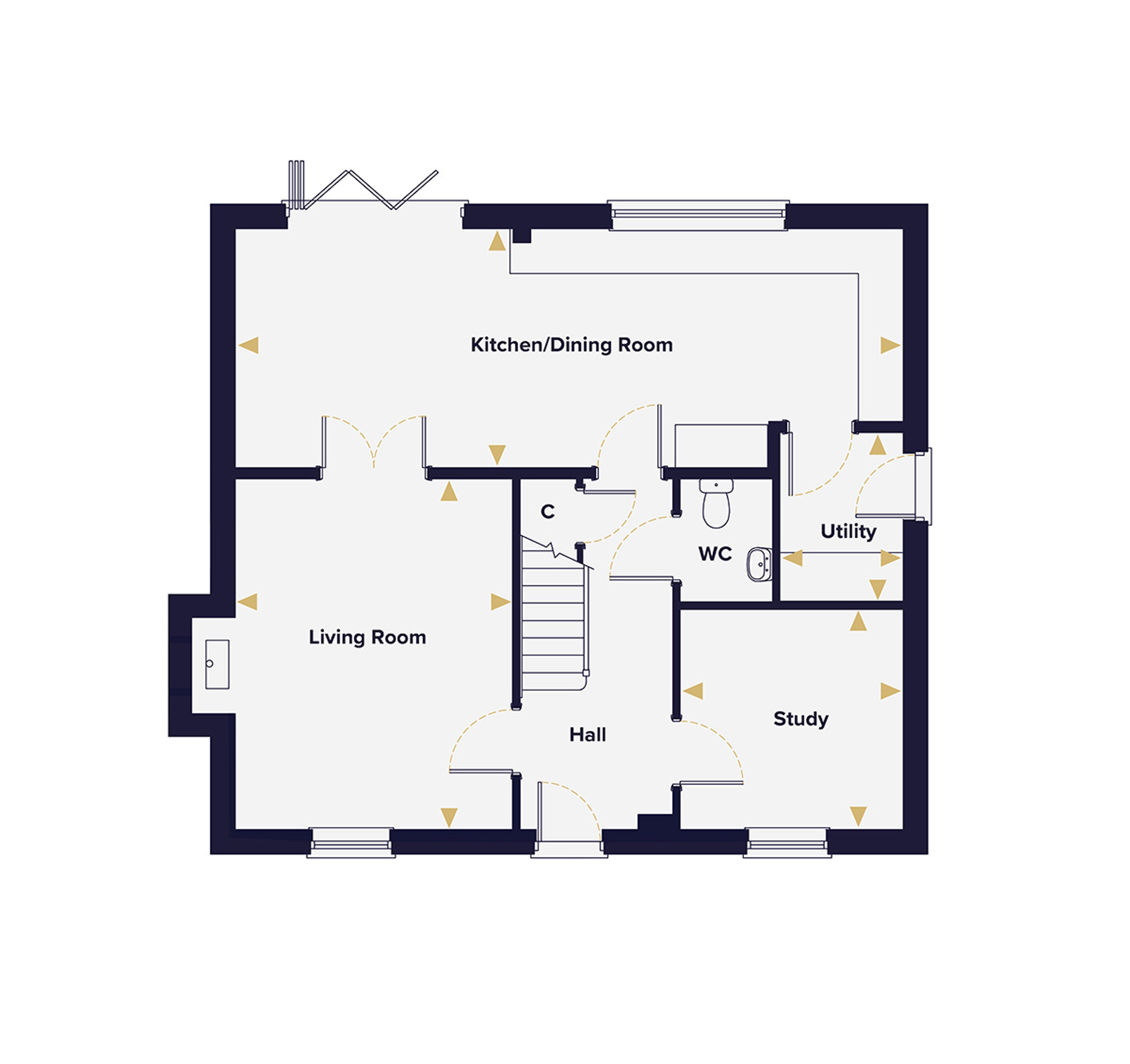 Through double doors, the living room offers a completely different experience, a more intimate, characterful space warmed by a beautiful fireplace that gives the room real heart and personality. Whether the bi-fold doors are thrown open on a sunny afternoon or the fire is the focal point on a winter evening, this room earns its place as one of the most inviting in the home. A dedicated study at the front of the house provides a calm, defined workspace away from the main living areas, while a cloakroom and utility room complete a ground floor that has been thought through with real care.