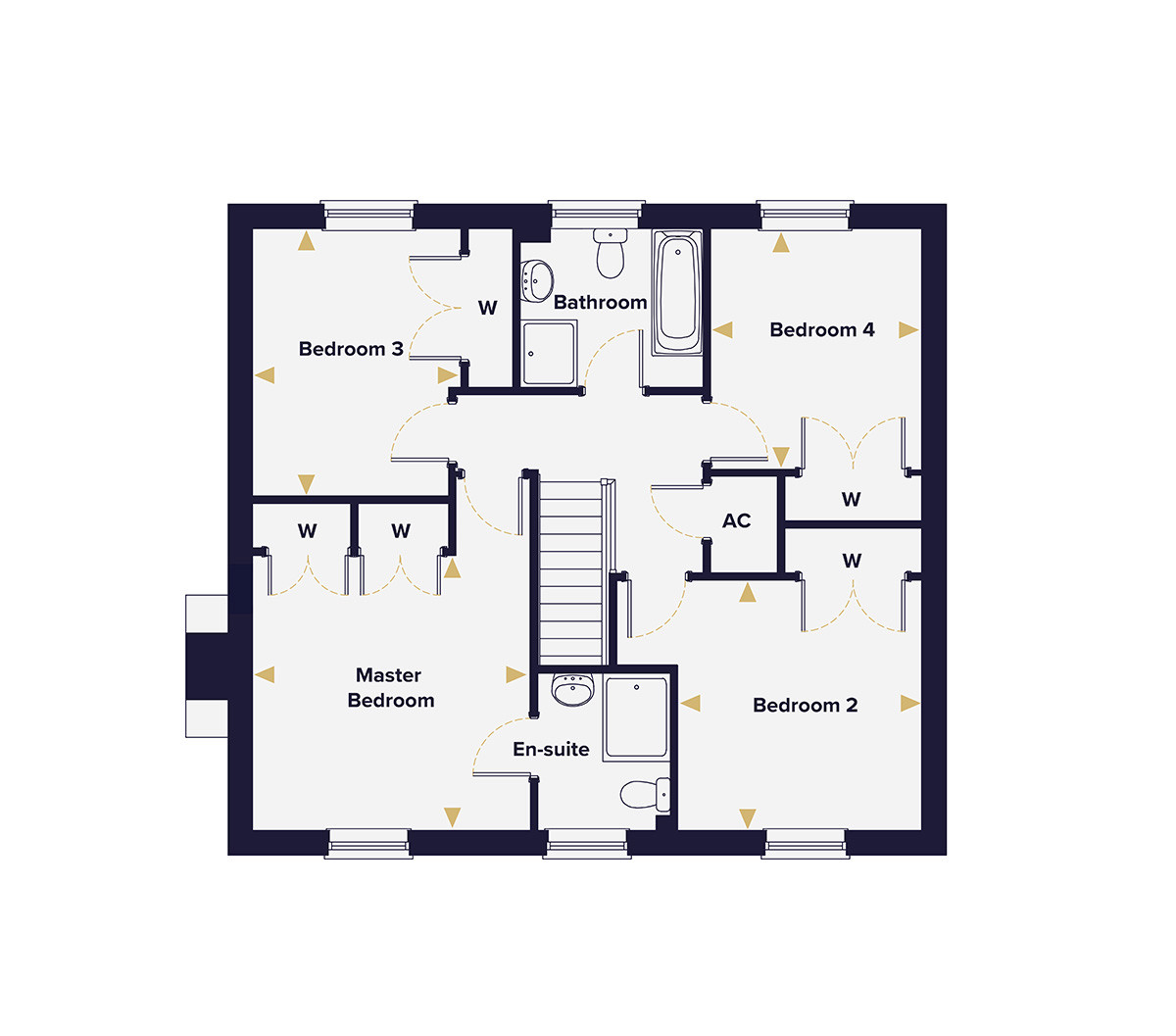 Upstairs, four generous double bedrooms all feature fitted wardrobes, a detail that speaks to the quality and practicality running through every aspect of The Heacham. The master bedroom benefits from fitted wardrobes and a private en suite, creating a genuinely luxurious retreat. Bedrooms two, three and four are each well-proportioned double rooms served by a stylish family bathroom, offering flexibility and comfort for families of every size.