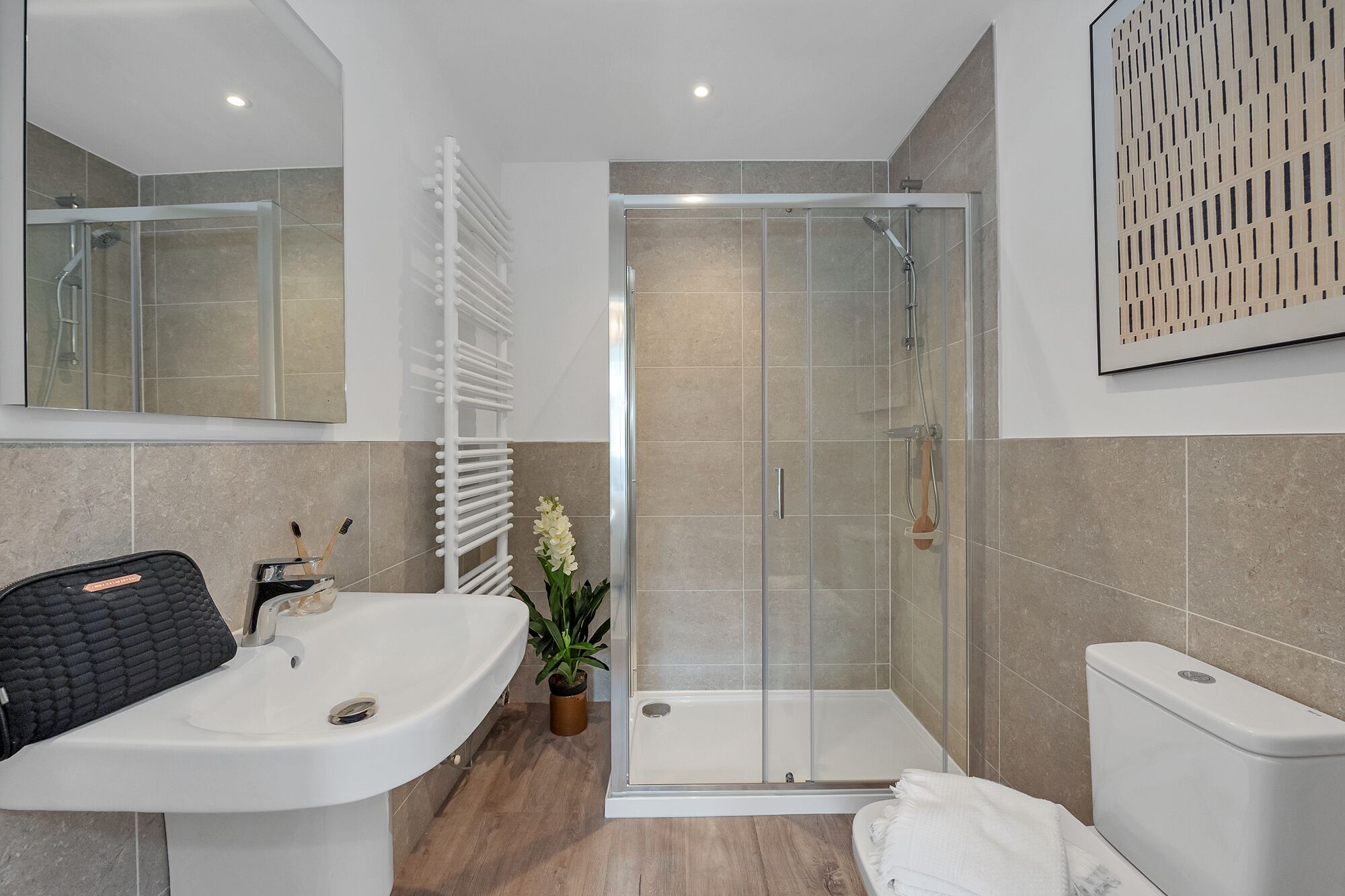A family bathroom and an ensuite to the master bedroom, giving everyone space when it matters most