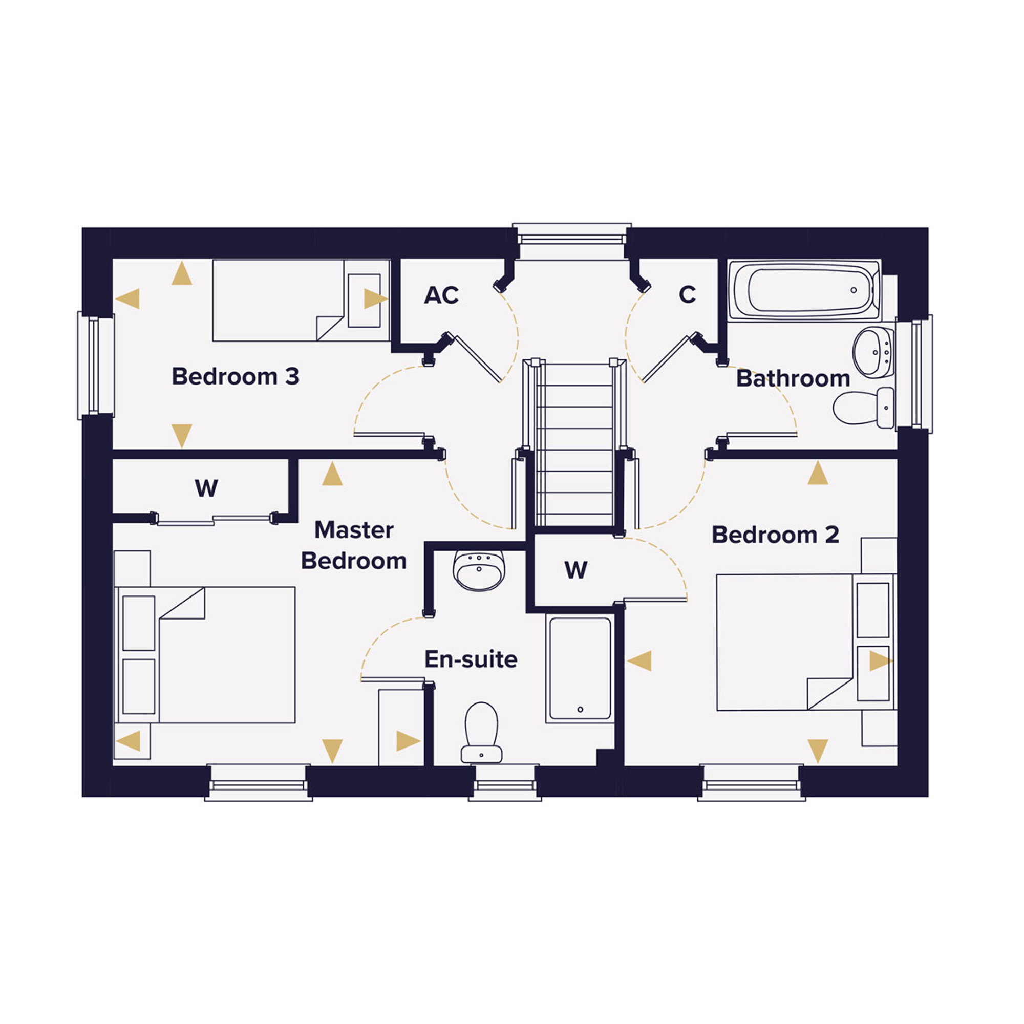 A family bathroom and an ensuite to the master bedroom, giving everyone space when it matters most