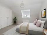 Once you're upstairs, everything flows from an open plan living, kitchen and dining room that makes the most of the footprint. The master bedroom has a fitted wardrobe and en suite. Bedroom 2 has a built-in cupboard. There's a family bathroom and additional storage under the stairs, accessible from the garage. A separate path leads down to your own rear garden.