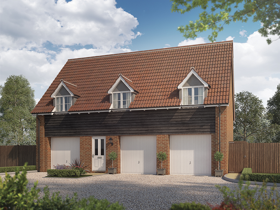 Home 139, The Alde presents a two-bedroom detached coach house with a garage and parking.