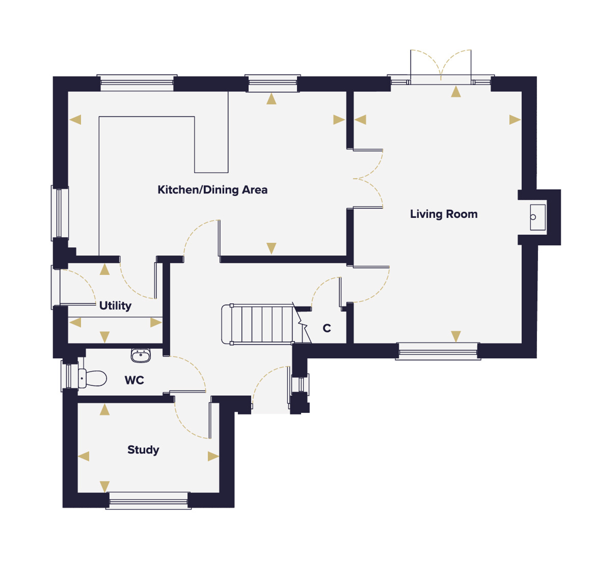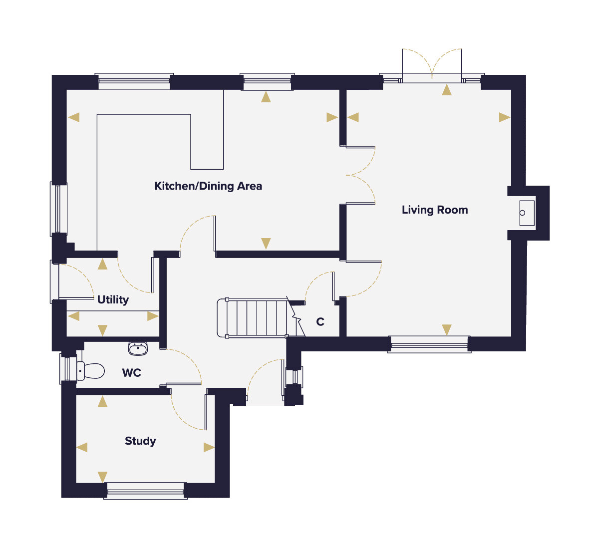 The open-plan kitchen and dining area is a proper family space, large enough to cook, eat and sit together without any of it feeling cramped. It flows naturally into a separate utility room, keeping the laundry away from the main living areas. A dedicated study completes the ground floor.