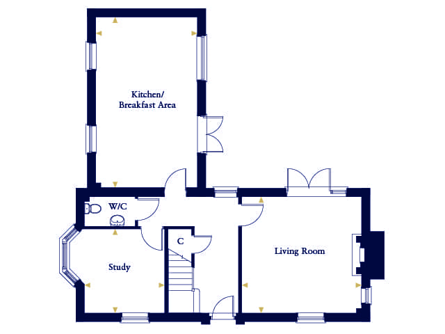 The ground floor benefits from an open plan kitchen/dining area with French doors leading to the rear garden, a separate dual aspect living room and a study with a feature bay window.