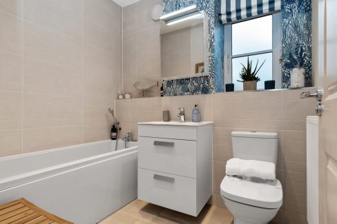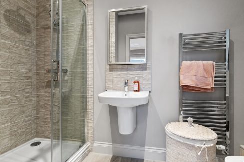 Upstairs boasts four double bedrooms. Both the Master bedroom and bedroom 2 include a double fitted wardrobe and a en suite with a double shower, while bedroom 2 is additionally characterised by sloping ceilings and dual aspect with a roof light. Bedroom 3 also has a double fitted wardrobe and bedroom 4 overlooks the garden, both are accompanied by a good-sized bathroom.
