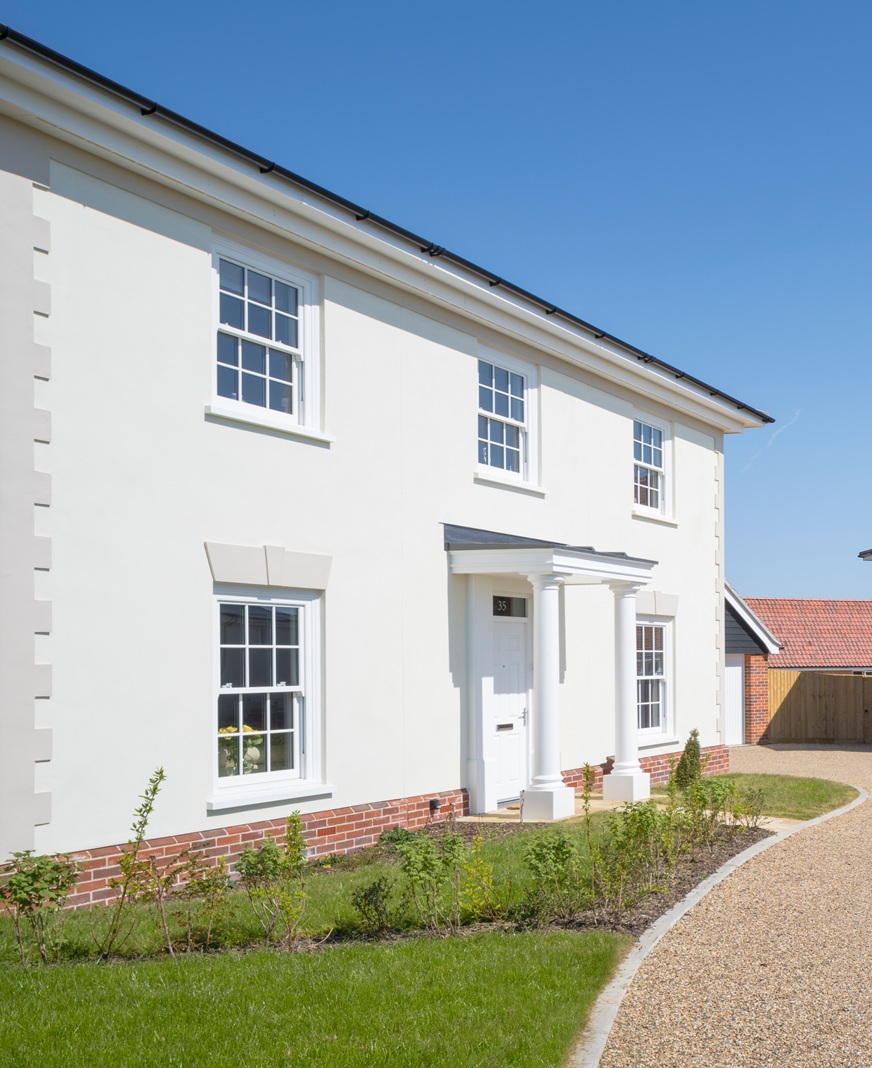 Our porches and porticoes add dynamism and curb appeal to each home and street scene, creating a sense of arrival that sets the tone before you even step inside. From ornate porches for a countryside aesthetic to Georgian-style pilasters and architraves that frame the doorway with classical elegance, every entrance is thoughtfully designed to suit its setting.