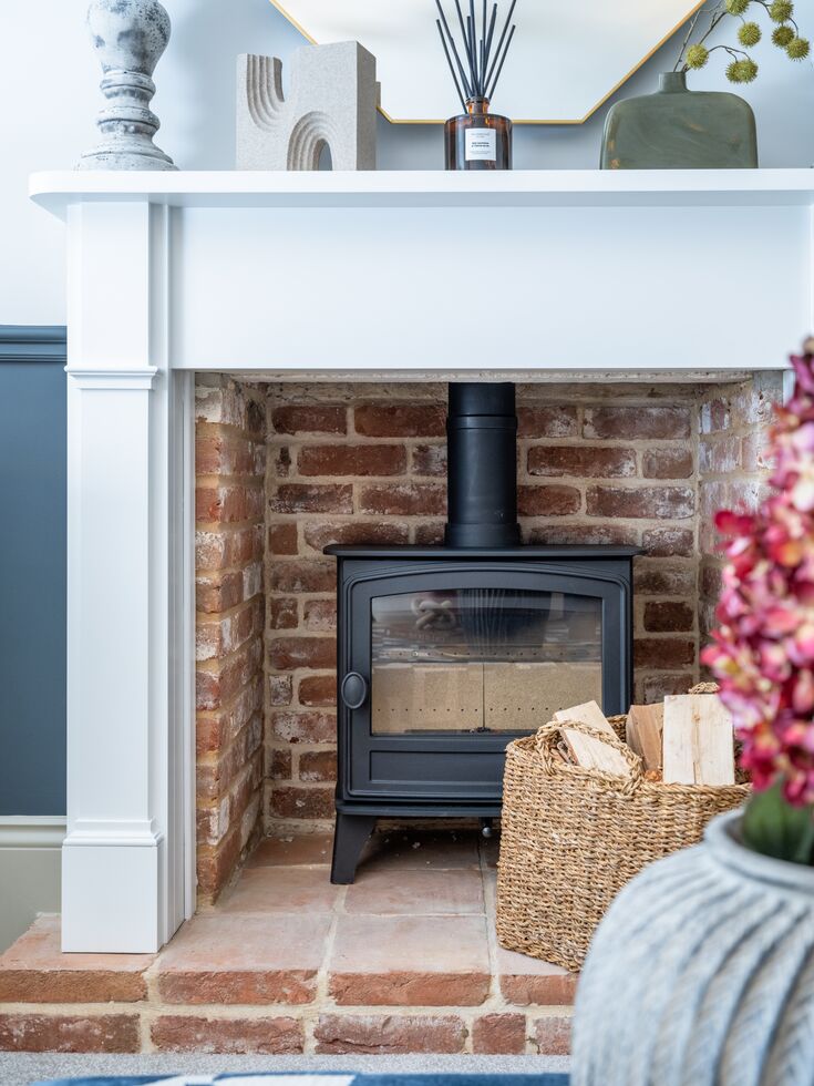 We use reclaimed bricks laid in an irregular style, adding cut bricks to give each fireplace a unique, hand-crafted look that feels authentically aged. We've replaced open fires with wood burners, which give out more heat and are reliable, durable and off-grid – combining traditional appeal with modern efficiency to create homes that feel as comforting as they look.