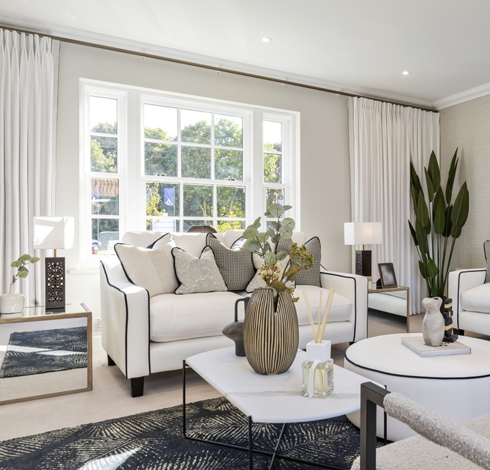 Window frames are set back into the brickwork to create subtle shadowing and depth across our façades, while varied proportions and thoughtful positioning enhance the individual character of each home. Inside, you'll find smart polished-chrome handles and catches that feel both contemporary and refined – finishing touches that reflect the same attention to detail we apply to every exterior view.
